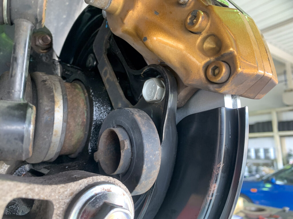 以前点検などをさせていただいた際に、リア側ハブのガタからの異音とリア側ブレーキローターの摩耗がありましたので今回リア側のリフレッシュ作業の方をさせていただきました。