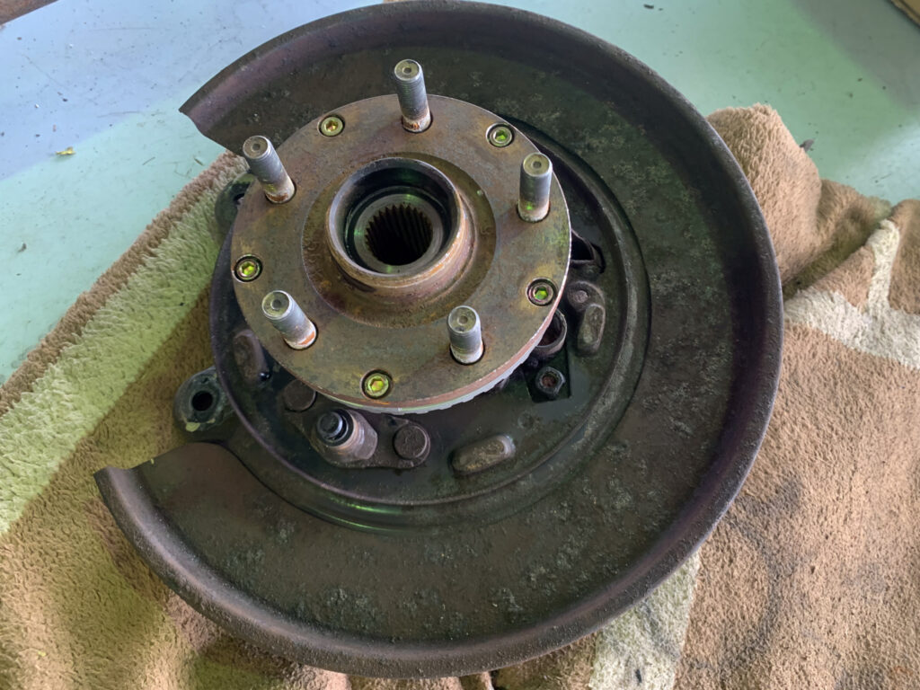 こちらは取り外したハブの部品です全体的に錆などがでてきているので今回はアスクルやバックプレートも同時に交換させていただきました。