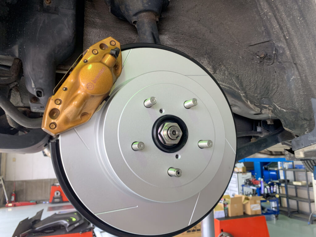 新品部品を組み上げてブレーキローターやブレーキパッドを取り付けをしていき戻していきます。