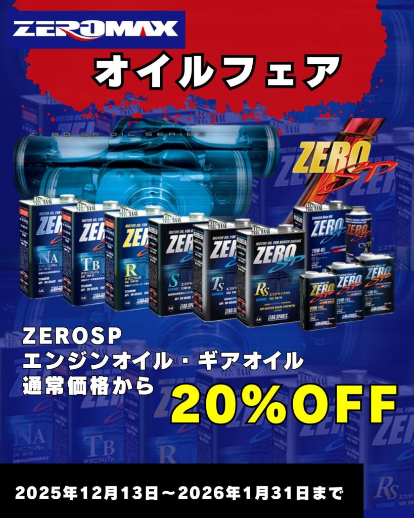 明日12月13日(土)から来年1月31日までZERO SPオイルシリーズのキャンペーンを開始させていただきます。
